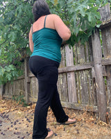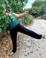 Chickfly pants are made with soft, strong, stretchy, and sustainable bamboo fabric, colored with organic dyes. Our patented fly is held together by tension, creating a seamless, flattering, soft, and easy-to-use feature in the most comfortable and stylish black pants that every woman needs not only for style but for convenience and functionality. Great for yoga, hiking, biking, rock climbing, high-lining, and or any outdoor activity, yet stylish enough to wear in the city for a night out dancing.