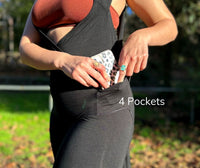 With Chickfly's Butter Onesie you can carry what you need in the ultra-functional pockets. A phone fits nicely in the outside pocket with a fold-over cover. You will find your secret pocket beneath the bodice; slip your hand in and hide your goodies inside!