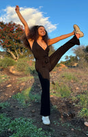 Our patented fly is held together by tension, creating a seamless, flattering, soft, and easy-to-use feature in the most comfortable and stylish jumpsuit. Our design solves the bathroom problem. No need to strip just to go potty! The Butter Onesie is like the little black dress that every womxn needs, not only for style but for convenience and functionality.